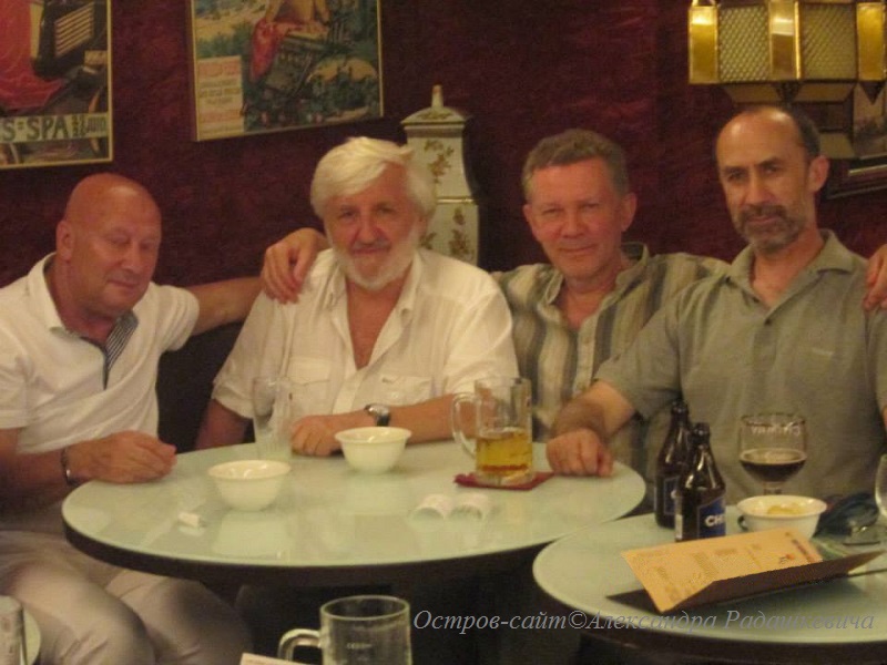 Фестивальные застолья-2013. Слева: Ксения Захарова-Воловик, Александр Радашкевич, Юрий Кобрин,