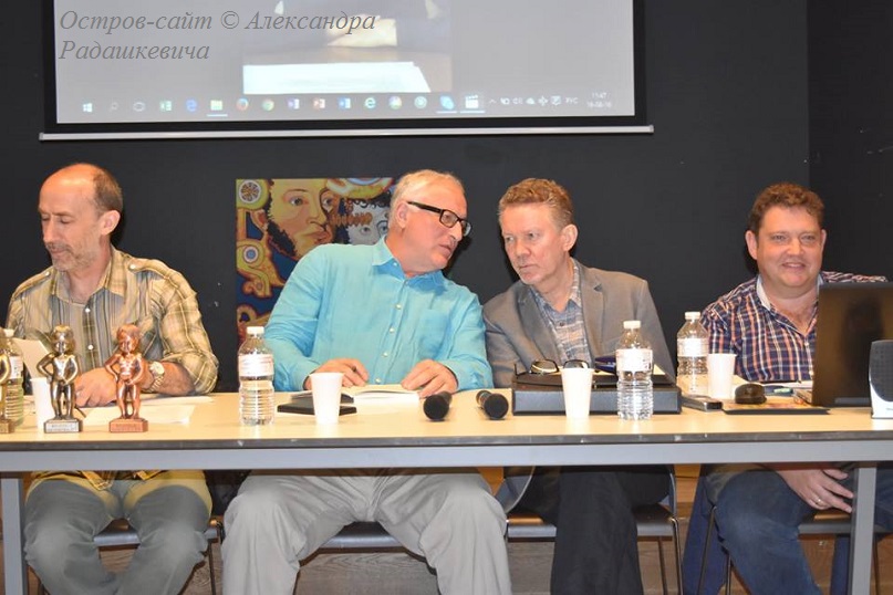 | "Эмигрантская лира -2016". Александр Мельник, Андрей Грицман, Александр Радашкевич и Михаэль Шерб. Льеж, музей Курциуса. Фото Елены Зейферт. |