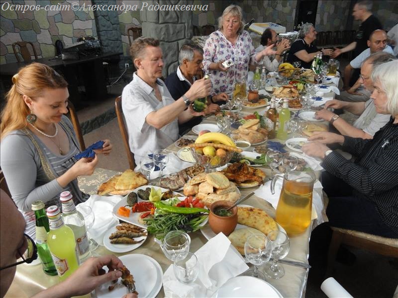 Фестивальные застолья-2013. Слева: Ксения Захарова-Воловик, Александр Радашкевич, Юрий Кобрин,